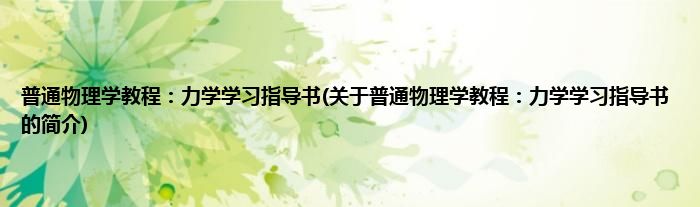 本文关于普通物理学教程:力学学习指导书的简介就讲解完毕,希望对大家有所帮助。