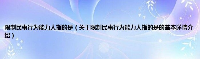 本文关于限制民事行为能力人指的是的基本详情介绍就讲解完毕,希望对大家有所帮助。