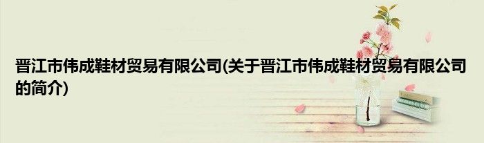 本文关于晋江市伟成鞋材贸易有限公司的简介就讲解完毕,希望对大家有所帮助。