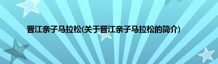 大家好,晋江亲子马拉松,关于晋江亲子马拉松的简介很多人还不知道,现在让我们一起来看看吧!