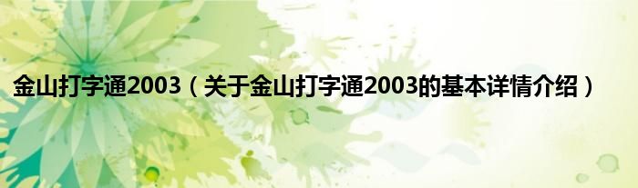金山打字通2003(关于金山打字通2003的基本详情介绍)