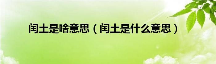 以上就是【闰土是啥意思,闰土是什么意思】相关内容。