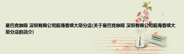 星巴克咖啡深圳有限公司前海香缤大厦分店(关于星巴克咖啡深圳有限公司前海香缤大厦分...