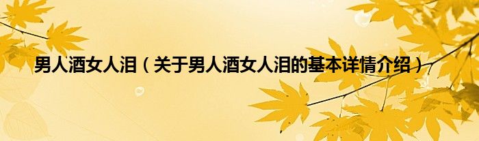 本文关于男人酒女人泪的基本详情介绍就讲解完毕,希望对大家有所帮助。