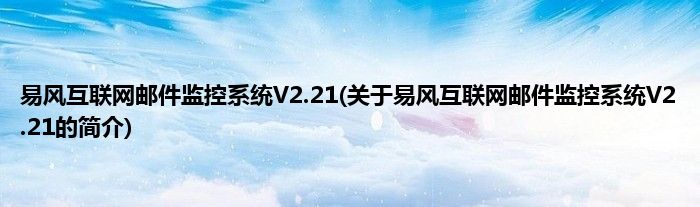 大家好,易风互联网邮件监控系统V2.21,关于易风互联网邮件监控系统V2.21的简介很多人还不知道,现在让我们一起来看看吧!