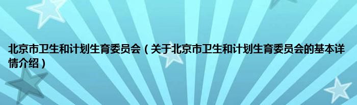 本文关于北京市卫生和计划生育委员会的基本详情介绍就讲解完毕,希望对大家有所帮助。