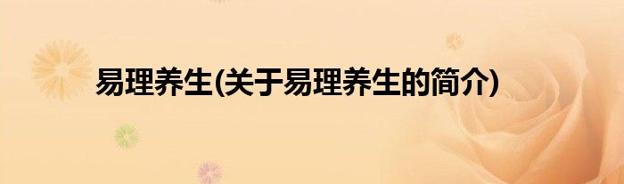 大家好,易理养生,关于易理养生的简介很多人还不知道,现在让我们一起来看看吧!