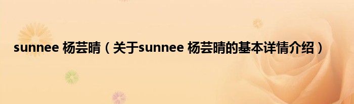 sunnee杨芸晴(关于sunnee杨芸晴的基本详情介绍)