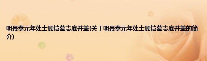 明景泰元年处士顾恺墓志底并盖(关于明景泰元年处士顾恺墓志底并盖的简介)