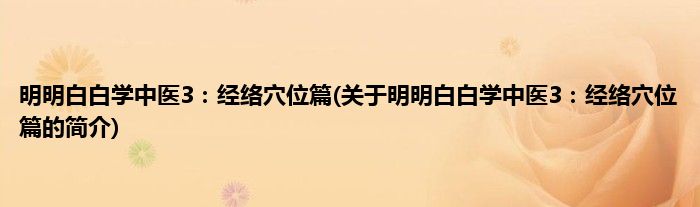本文关于明明白白学中医3:经络穴位篇的简介就讲解完毕,希望对大家有所帮助。