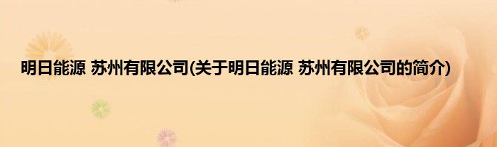 本文关于明日能源 苏州有限公司的简介就讲解完毕,希望对大家有所帮助。