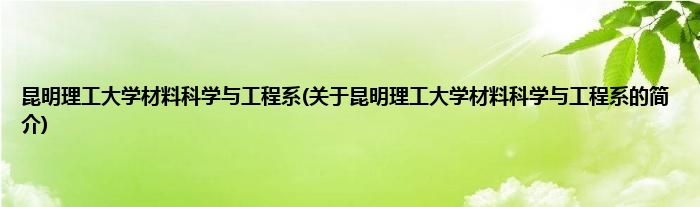 本文关于昆明理工大学材料科学与工程系的简介就讲解完毕,希望对大家有所帮助。