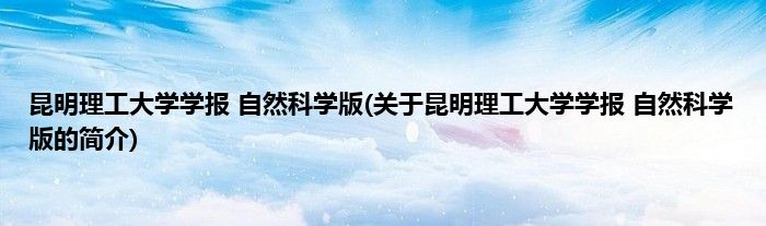 本文关于昆明理工大学学报 自然科学版的简介就讲解完毕,希望对大家有所帮助。