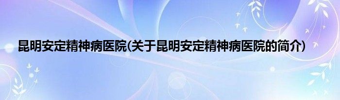 昆明安定精神病医院(关于昆明安定精神病医院的简介)