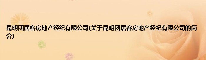 本文关于昆明团居客房地产经纪有限公司的简介就讲解完毕,希望对大家有所帮助。