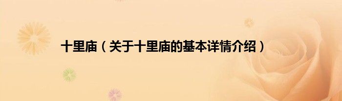 本文关于十里庙的基本详情介绍就讲解完毕,希望对大家有所帮助。
