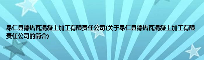 昂仁县德热瓦混凝土加工有限责任公司(关于昂仁县德热瓦混凝土加工有限责任公司的简介)