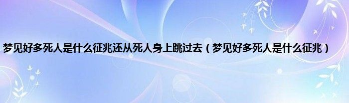 大家好,小问来为大家解答以上问题。梦见好多死人是什么征兆还从死人身上跳过去,梦见好多死人是什么征兆这个很多人还不知道,现在让我们一起来看看吧!