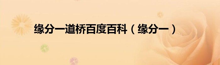 大家好,小问来为大家解答以上问题。缘分一道桥百度百科,缘分一这个很多人还不知道,现在让我们一起来看看吧!