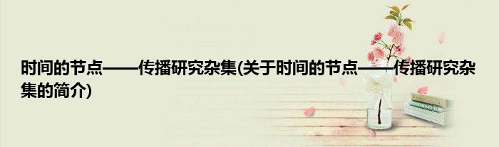 大家好,时间的节点——传播研究杂集,关于时间的节点——传播研究杂集的简介很多人还不知道,现在让我们一起来看看吧!