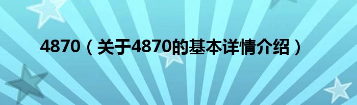 本文关于4870的基本详情介绍就讲解完毕,希望对大家有所帮助。