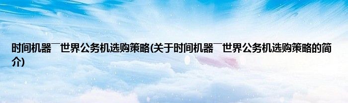 大家好,时间机器――世界公务机选购策略,关于时间机器――世界公务机选购策略的简介很多人还不知道,现在让我们一起来看看吧!