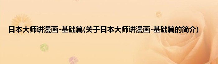 本文关于日本大师讲漫画-基础篇的简介就讲解完毕,希望对大家有所帮助。