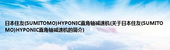 本文关于日本住友(SUMITOMO)HYPONIC直角轴减速机的简介就讲解完毕,希望对大家有所帮助。