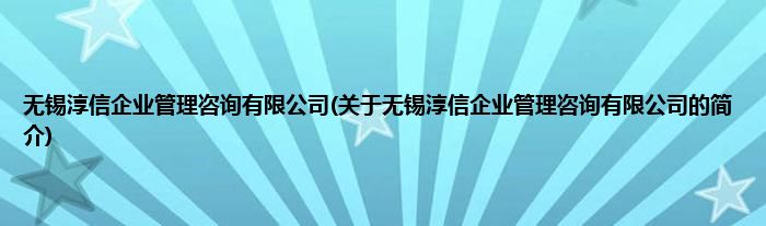 本文关于无锡淳信企业管理咨询有限公司的简介就讲解完毕,希望对大家有所帮助。