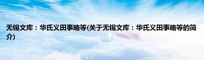 本文关于无锡文库:华氏义田事略等的简介就讲解完毕,希望对大家有所帮助。