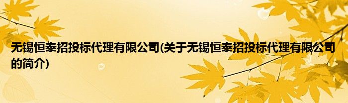本文关于无锡恒泰招投标代理有限公司的简介就讲解完毕,希望对大家有所帮助。