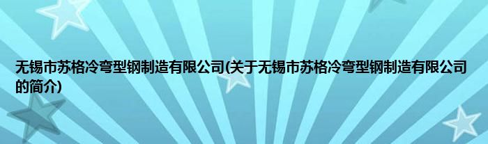 无锡市苏格冷弯型钢制造有限公司(关于无锡市苏格冷弯型钢制造有限公司的简介)