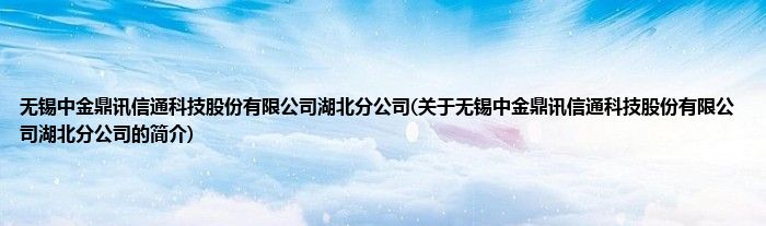 本文关于无锡中金鼎讯信通科技股份有限公司湖北分公司的简介就讲解完毕,希望对大家有所帮助。