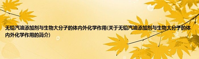 本文关于无铅汽油添加剂与生物大分子的体内外化学作用的简介就讲解完毕,希望对大家有所帮助。