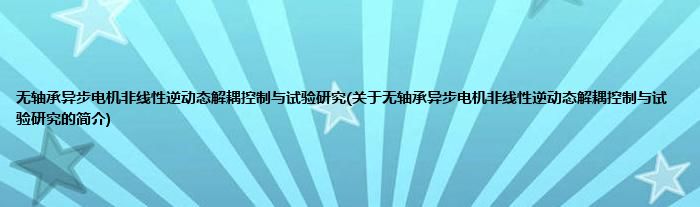 本文关于无轴承异步电机非线性逆动态解耦控制与试验研究的简介就讲解完毕,希望对大家有所帮助。