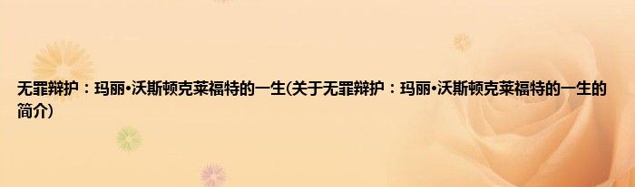 大家好,无罪辩护:玛丽·沃斯顿克莱福特的一生,关于无罪辩护:玛丽·沃斯顿克莱福特的一生的简介很多人还不知道,现在让我们一起来看看吧!