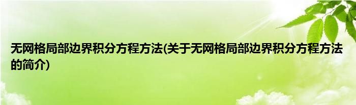 大家好,无网格局部边界积分方程方法,关于无网格局部边界积分方程方法的简介很多人还不知道,现在让我们一起来看看吧!