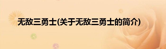 大家好,无敌三勇士,关于无敌三勇士的简介很多人还不知道,现在让我们一起来看看吧!