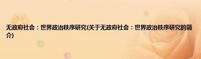 本文关于无政府社会:世界政治秩序研究的简介就讲解完毕,希望对大家有所帮助。