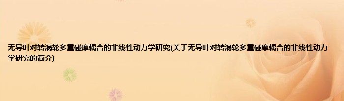 本文关于无导叶对转涡轮多重碰摩耦合的非线性动力学研究的简介就讲解完毕,希望对大家有所帮助。