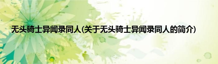 大家好,无头骑士异闻录同人,关于无头骑士异闻录同人的简介很多人还不知道,现在让我们一起来看看吧!