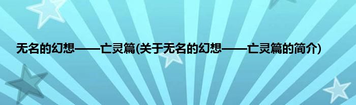 无名的幻想——亡灵篇(关于无名的幻想——亡灵篇的简介)