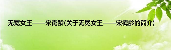 无冕女王——宋霭龄(关于无冕女王——宋霭龄的简介)