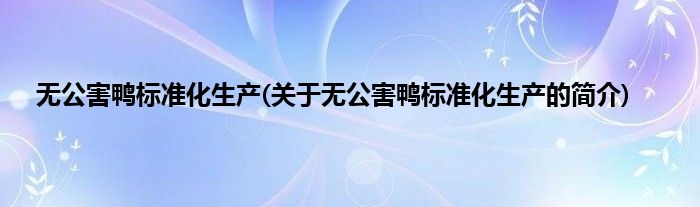 无公害鸭标准化生产(关于无公害鸭标准化生产的简介)