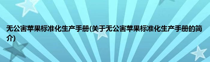无公害苹果标准化生产手册(关于无公害苹果标准化生产手册的简介)