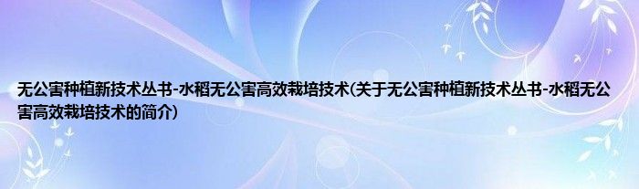 无公害种植新技术丛书-水稻无公害高效栽培技术(关于无公害种植新技术丛书-水稻无公害高效栽培技术的简介)