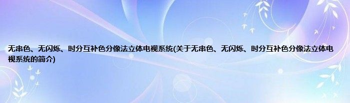 无串色、无闪烁、时分互补色分像法立体电视系统(关于无串色、无闪烁、时分互补色分像法立体电视系统的简介)