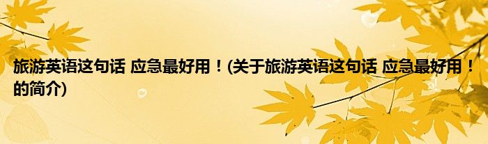 旅游英语这句话应急最好用!(关于旅游英语这句话应急最好用!的简介)