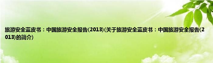 旅游安全蓝皮书:中国旅游安全报告(2013)(关于旅游安全蓝皮书:中国旅游安全报...