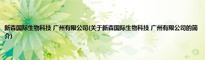 新森国际生物科技 广州有限公司(关于新森国际生物科技 广州有限公司的简介)